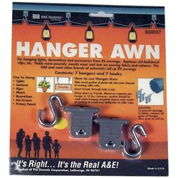 Great for hanging patio lights, signs, plants, decorations, sun screens and privacy panels from your awning roller tube. Fits most awning brands. 7 hangers and 7 hooks per package.